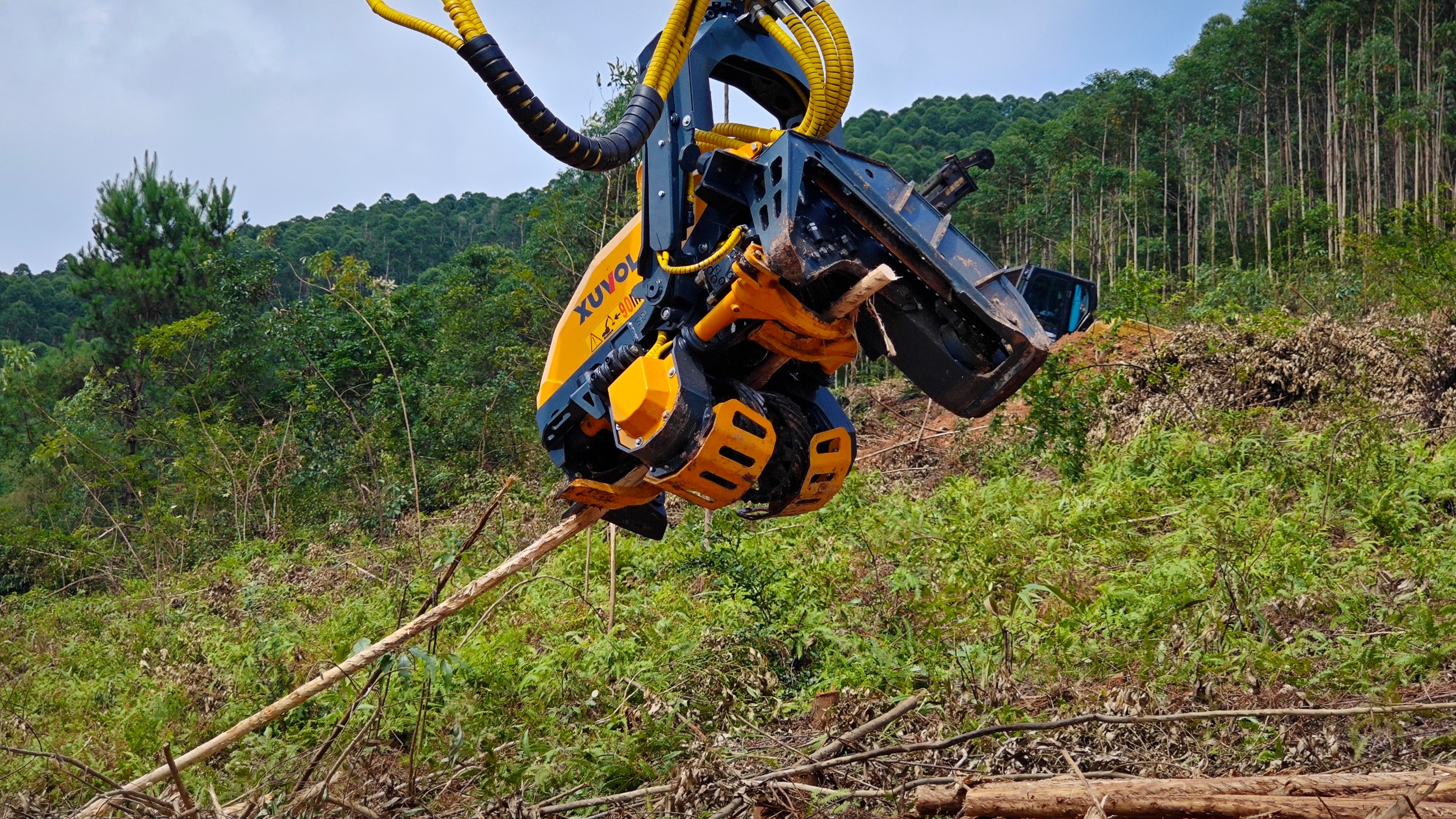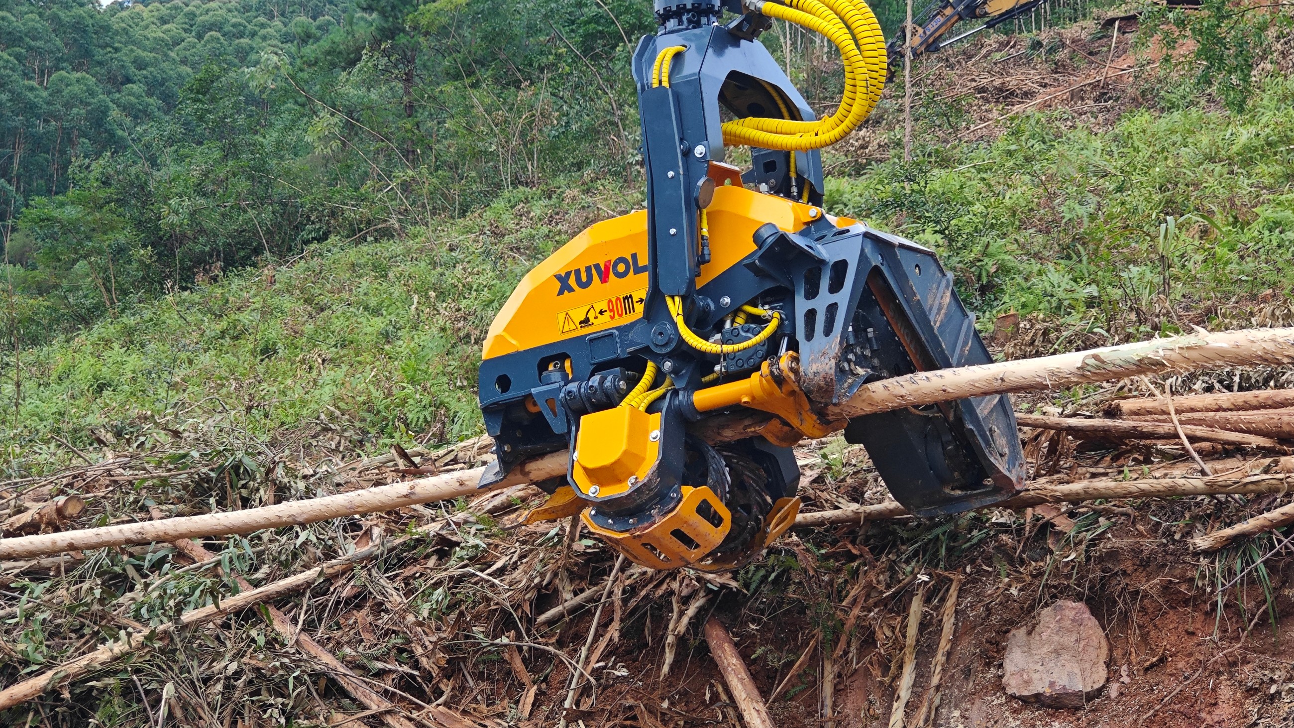 徐沃XVF-500E是一款具有剝樹皮功能的伐木機(jī),專為有木頭剝皮的需求的木頭直徑小于500mm林業(yè)采伐需求設(shè)計的。特殊的剝皮喂料輪在斜角上可進(jìn)行多切邊操作,從而產(chǎn)生一種螺旋式的樹干傳動并提供質(zhì)量最好、速度最快的剝皮作業(yè),在不進(jìn)行剝皮作業(yè)時,可以更換常規(guī)喂料輪進(jìn)行采伐作業(yè)。匹配13-15T挖掘機(jī)。