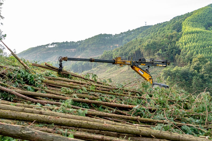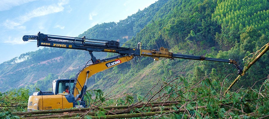 高效環(huán)保,適用多種作業(yè)模式:四節(jié)臂設(shè)計(jì)方案使得伸縮臂的作業(yè)半徑更長(zhǎng),每節(jié)伸縮臂的強(qiáng)度更高,縮回總長(zhǎng)度更短更適合林業(yè)轉(zhuǎn)運(yùn),鋼絲繩上置,伸縮時(shí)輔助拉住伸縮臂,設(shè)計(jì)更合理;配有360°全回轉(zhuǎn)夾具,具備吊裝能力和伐木機(jī)搭配工作;超長(zhǎng)的延展臂可以進(jìn)行大范圍施工作業(yè),將伐到的樹木收集在一起;主要用于林業(yè)按樹、松樹、杉樹等拉山歸堆,適應(yīng)于山地林業(yè)作業(yè),開(kāi)山拓荒等。設(shè)計(jì)可調(diào)整角度的伸縮臂結(jié)構(gòu),比傳統(tǒng)的伸縮臂更方便更靈活,油管放松裝置,預(yù)防長(zhǎng)時(shí)間施工油管跳出導(dǎo)致?lián)p壞,鐘擺式結(jié)構(gòu)的回轉(zhuǎn)馬達(dá),柔性連接方式吸收回轉(zhuǎn)沖擊。